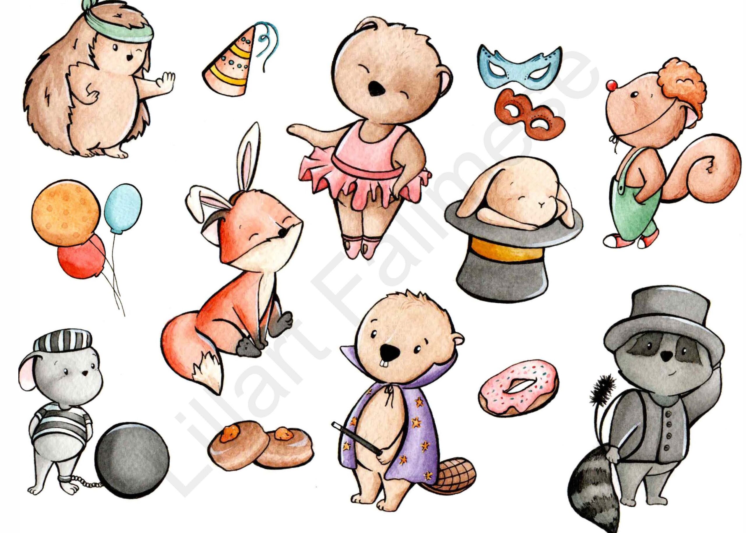 Akvarell festékkel készült saját tervezésű karaktereim, mintáim kisebb méretben is elérhetők.